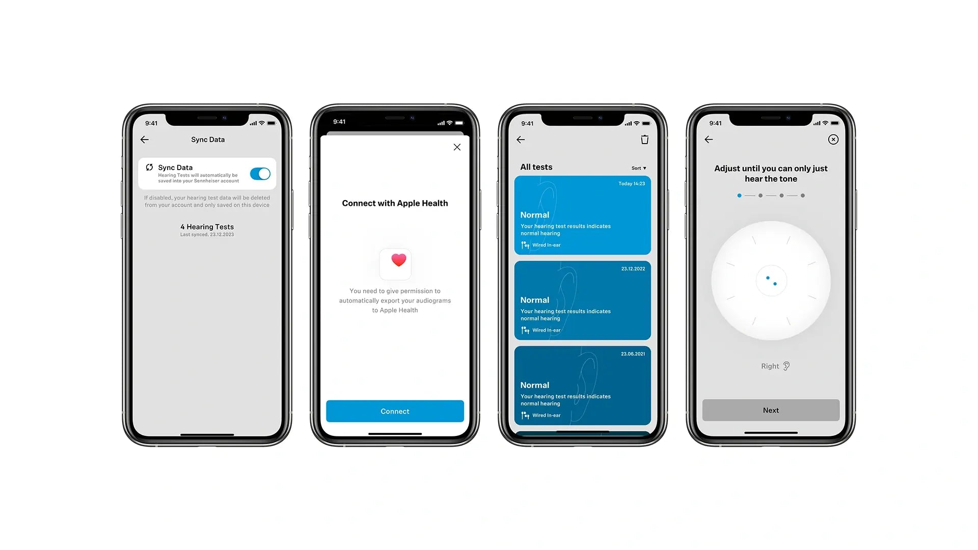Tài khoản Sennheiser cũng mở khóa các tính năng bổ sung như nhắc nhở thực hiện một bài kiểm tra khác và khả năng đồng bộ hóa thính lực đồ với Apple Health: điều này cung cấp cho người dùng iOS cái nhìn toàn diện, nơi họ có thể theo dõi sức khỏe thính giác của mình tại một nơi cùng với các biện pháp đo lường sức khỏe khác.