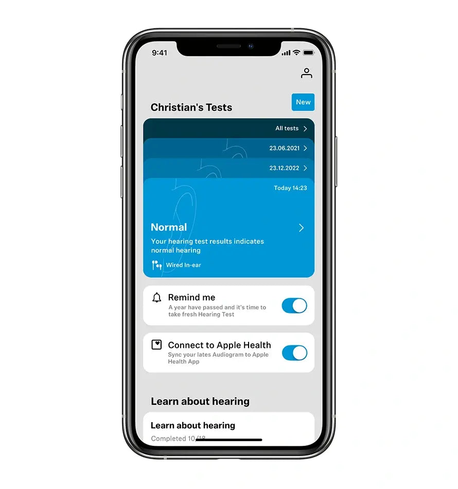 Nếu bạn tò mò muốn tìm hiểu thêm về sự phát triển thính giác của mình theo thời gian, bạn có thể để Sennheiser Hearing Test nhắc nhở bạn thực hiện bài kiểm tra khác sau một năm.
