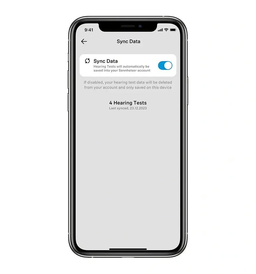 Việc đăng ký hoặc đăng nhập bằng tài khoản Sennheiser hiện có sẽ cho phép bạn truy cập kết quả kiểm tra trước đó và tải lên Apple Health, đồng thời gửi lời nhắc khi đến thời điểm kiểm tra tiếp theo. Tất cả những điều này sẽ giúp bạn theo dõi sức khỏe thính giác của mình.